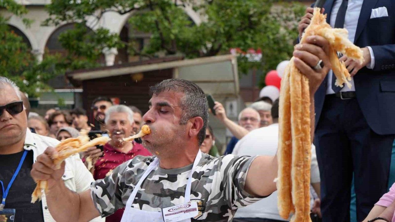 İstanbul’un ardından 14’üncüsü Bursa’da düzenlenen Geleneksel Börek Yeme Yarışması’nda yarışmacılar 5 dakikada 16 metre börek yemek için mücadele etti. İlk 3’e giren 3 yarışmacıda aynı metrede börek yeme başarısını gösterince ’VAR’a gidildi. Hassas terazi ile tartılan böreklerde birinciyi 40 gramlık fark belirledi. 11 metre börek yiyen Ali Kılıç geriye 584 gram en az böreği bırakarak yarışmanın birincisi oldu. Aynı metre börek yiyen bayan yarışmacı Fatma Arslan geriye 624 gram börek bırakarak 2., Uğur Dündar ise bıraktığı 700 gram börekle 3. oldu. Birinci 10 gram altının sahibi oldu.