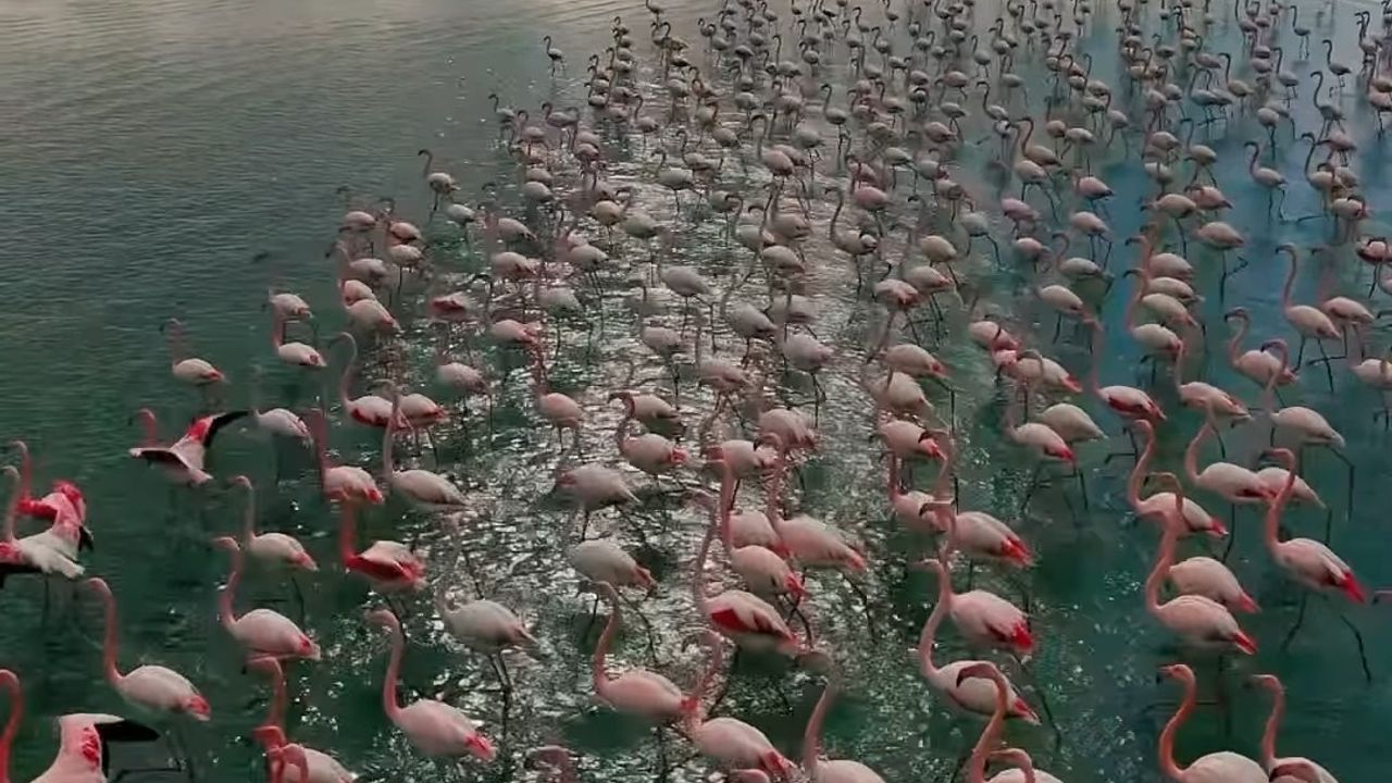 Doğunun saklı cenneti Erçek Gölü, bu yıl da gökyüzüne pembe dokunuşlar katan zarif misafirleri olan flamingoları ağırlamaya devam ediyor.