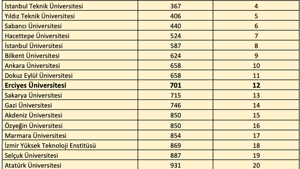 Erciyes Üniversitesi (ERÜ) prestijli değerlendirmede dünya üniversiteleri arasında 701, Türkiye üniversiteleri arasında 12. sırada ve devlet üniversiteleri arasında ise 9. sırada yer alarak önemli bir başarıya imza attı.