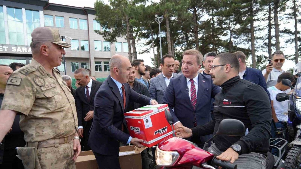 Erzincan Valiliği öncülüğünde, İl Jandarma Komutanlığı ve İl Emniyet Müdürlüğü işbirliğinde trafikte farkındalık oluşturmak ve sürücü güvenliğini artırmak amacıyla düzenlenen etkinlik kapsamında, kaskı olmayan motosiklet kullanıcılarına ücretsiz kask dağıtıldı.