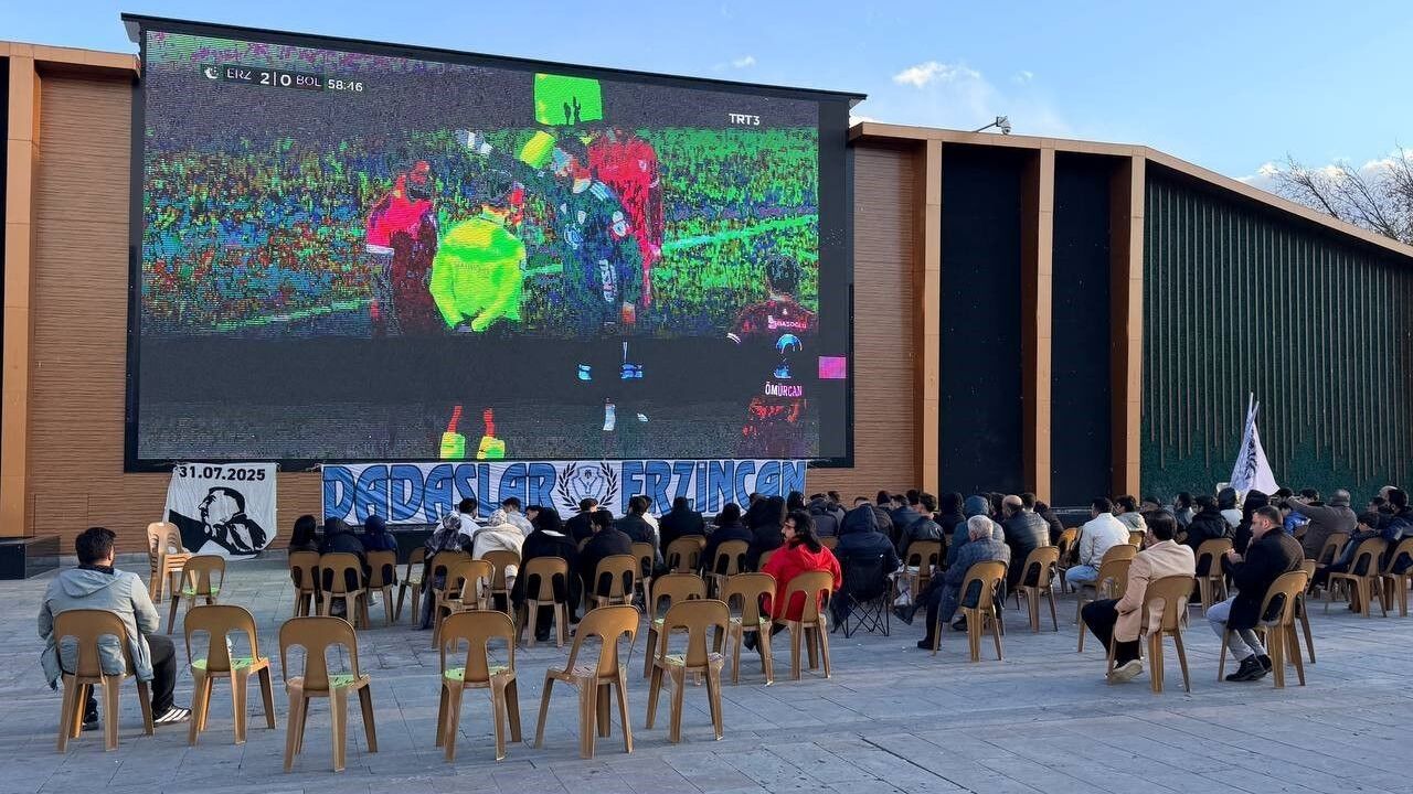 Ligin 35. haftasında Erzurum'da oynanan ve TRT Spor'dan canlı yayınlanan mücadele, Erzincan Dörtyol Meydanı'nda kurulan dev ekrana yansıtıldı. Meydanda toplanan çok sayıda vatandaş, komşu ilin takımı Erzurumspor'a tezahüratlarla destek oldu.
