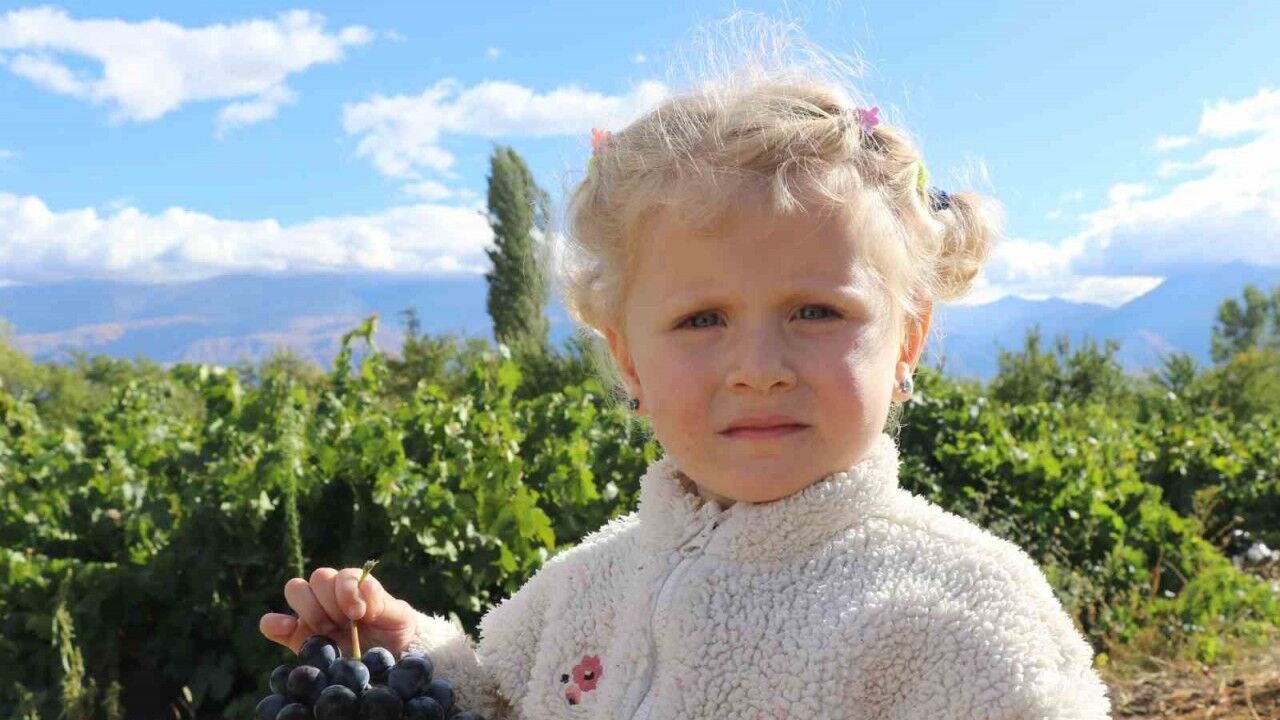Erzincan’ın Üzümlü ilçesinde yetişen yörenin tescilli ürünlerinden "Cimin üzümü"nün hasadı sürüyor.