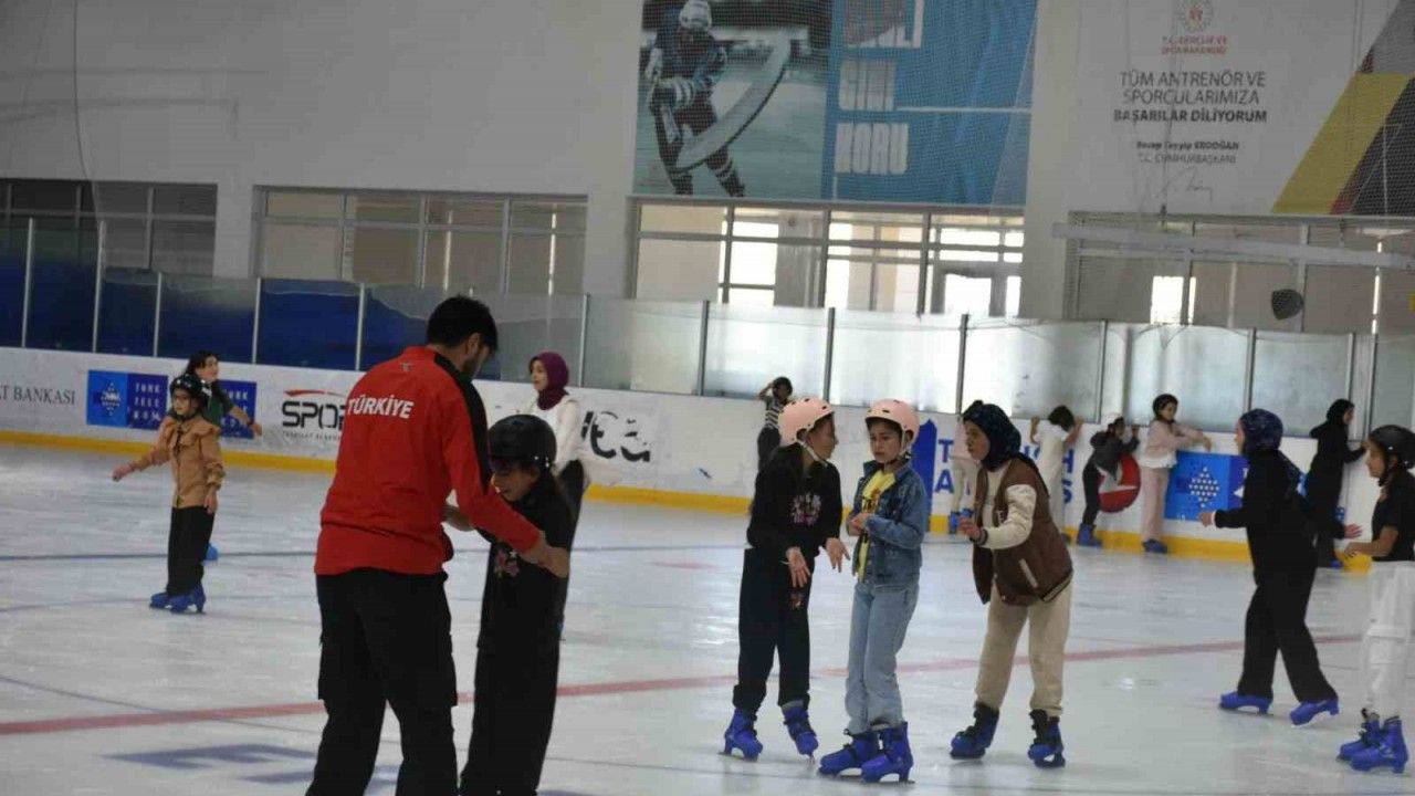 Erzurum Gençlik ve Spor İl Müdürlüğü Yaz Kur’an Kursları’nda Kur’an öğrenen öğrencileri buz pateni ile tanıştırdı.