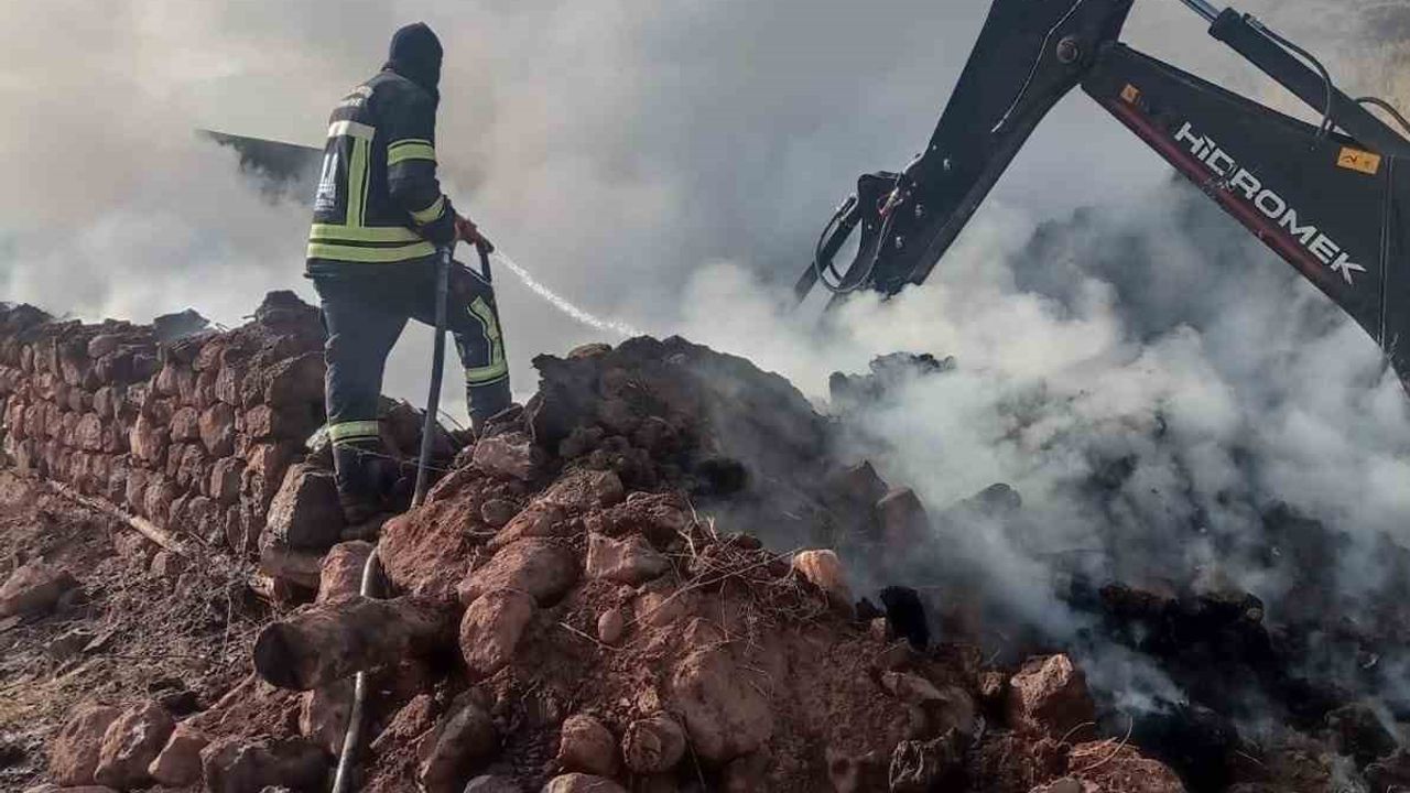 Erzurum'un Hınıs ilçesinde çıkan ahır yangınında 21 büyükbaş hayvan telef oldu.