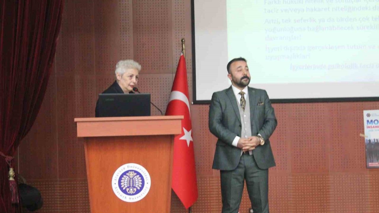 Atatürk Üniversitesi Tıp Fakültesi’nde Sürekli tıp eğitimi toplantıları kapsamında düzenlediği "İşyerinde psikolojik taciz Mobbing (Yıldırma)" paneli, Atatürk Üniversitesi Araştırma Hastanesi Konferans Salonu’nda gerçekleştirildi. Panelin moderatörlüğünü Prof. Dr. Canan Atalay ve Doç. Dr. Can Sevinç üstlenirken, Mobbingle Mücadele Derneği Erzurum Şube Başkanı ve Yeminli Sosyal Arabulucu Öğretim Görevlisi Jale Hülya Alcan ile MEDYAD Erzurum İl Temsilcisi Avukat Selçuk Yıldız konuşmacı olarak yer aldı.
