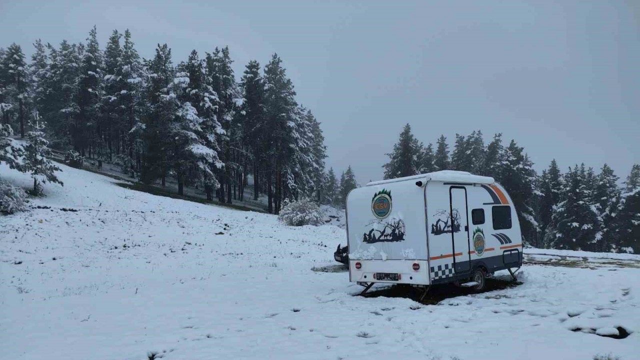 Oltu ilçesinde gece saatlerinde yağan karla Köroğlu Ormanları’nda kar kalınlığı yer yer 10 santimetreye ulaştı. Geceyi Köroğlu Ormanları’nda kamp yaparak geçiren yamaç paraşütçüsü Bayram Yücel, sabah karşılaştığı manzarayla hayrete düştü. Yücel, "Gece boyunca yağmur yağıyordu. Sabah uyandığımda ise her yerin beyaza büründüğünü gördüm. Gerçekten büyük bir sürprizdi" dedi.