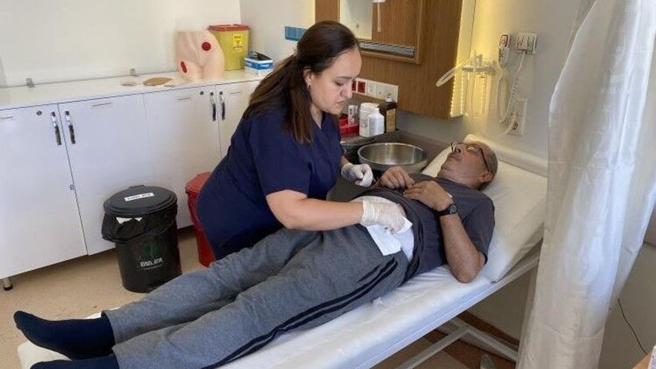 Bağırsak hastalığı sebebiyle Yunus Emre Devlet Hastanesi’ne yapılan ameliyat ile karnında Stoma oluşturulan 68 yaşındaki Nazmi Saygın, "Sık tuvalete çıkıyordum, hastalığım öyle başladı. Ameliyat öncesi biraz tedavi oldum. Sonrasında ameliyat yapıldı. Şükürler olsun şu anda çok iyiyim. Serap hanımdan eğitim aldık. Stoma’yı nasıl kullanacağımızı, değiştireceğimizi, herhangi bir sıkıntı olduğunda ne yapacağımızı bize anlattılar. Biz de şimdi evde bunları uyguluyoruz. Şimdi ilk gördüğümüzde ne olduğunu, nasıl kullanılacağını bilmiyoruz. İlk başta insan bir zorluk çekiyor ama ondan sonra anlatılınca, değiştirmeye başlayınca yavaş yavaş alışıyorsun. Hastalığın geçmeye başladıkça günden güne kolaylaşıyor. Doktorlarımız, Stoma olmasaydı bizim işimizin zor olacağını anlattılar" şeklinde konuştu.