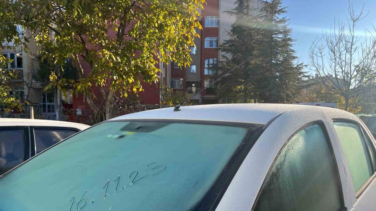 Eskişehir’de hava sıcaklıklarının düşmesiyle birlikte özellikle sabah erken saatlerde etkili olan soğuk hava, araçların ve açık alanların üzerinde kırağı oluşumuna neden oldu.
