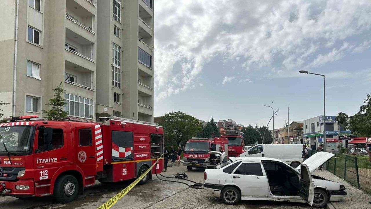 Edinilen bilgilere göre, Sarayaltı Mahallesi Celal Bayar Caddesi üzerinde bulunan 8 katlı binanın giriş katında oturan koca N.U. (45) ile eşi E.U. (36) arasında sabah saatlerinde tartışma çıktı. Tartışmanın ardından E.U. adlı kadın, Uşak İl Emniyet Müdürlüğü’ne giderek müracaatta bulundu. E.U. emniyette bulunduğu esnada kocası N.U. ise ikamet ettikleri daireyi ve binanın önünde bulunan E.U’ya ait iki aracı yakarak olay yerinden kaçtı.