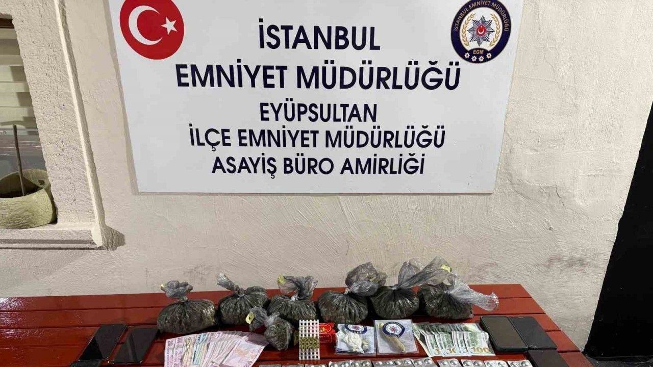 İstanbul Emniyet Müdürlüğü Eyüpsultan İlçe Müdürlüğü Ekipleri "Uyuşturucu Madde İmal ve Ticareti" suçunun önlenmesi, şüpheli şahısların tespit edilerek yakalanmasına yönelik operasyon gerçekleştirildi. Polis ekipleri, bir adreste uyuşturucu madde ticareti yapıldığı tespit etti. Adrese gerçekleştirilen operasyonda R.T., A.H.S., İ.T., A.K., M.A.A., Ş.Ö., D.Y., B.Ş. ve A.G. isimli 9 şüpheli yakalandı. Adreste yapılan aramalarda 651.9 gram skunk esrar, 2.30 gram taş kokain, 1.80 gram kokain, 327 adet uyuşturucu hap ve 15 adet fişek ele geçirdi. Şüphelilerin çeşitli suçlardan çok sayıda kayıtlarının olduğu tespit edildi.