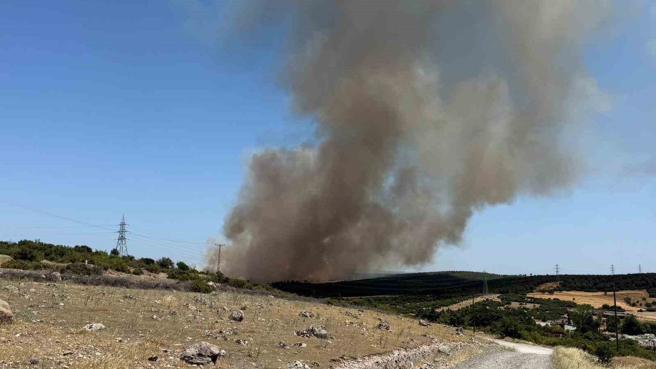 Çanakkale’nin Ezine ilçesinde tarım arazisinde başlayan yangın rüzgarın da etkisiyle ormanlık alana sıçradı. Yangına ekipler havadan ve karadan müdahale ediyor.