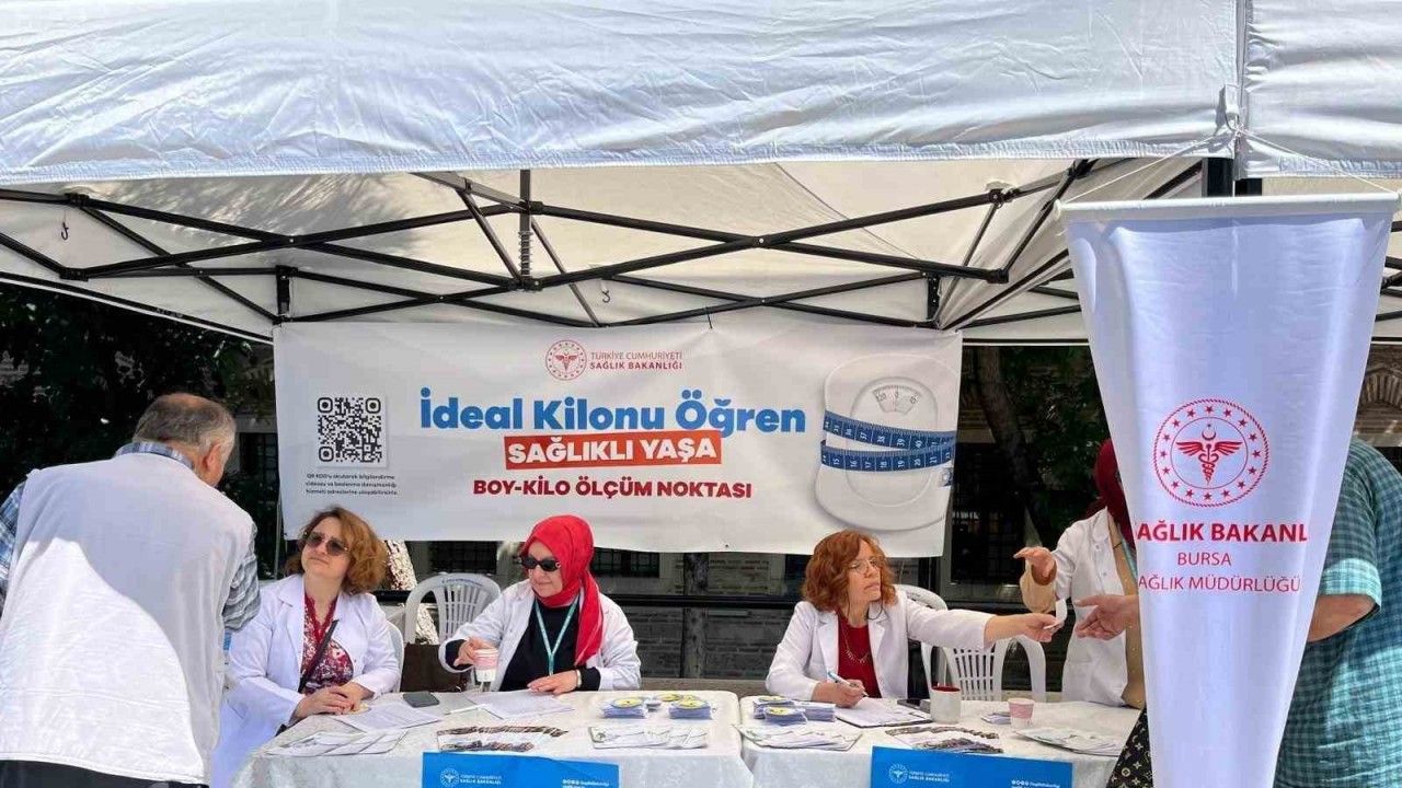 İl sağlık müdürlüğü ekipleri tarafından, Bursa’daki park ve meydanlarda kilo ölçümü yapılan vatandaşlardan vücut kitle endeksi riskli olanları sağlıklı hayat merkezlerine yönlendiriliyor.