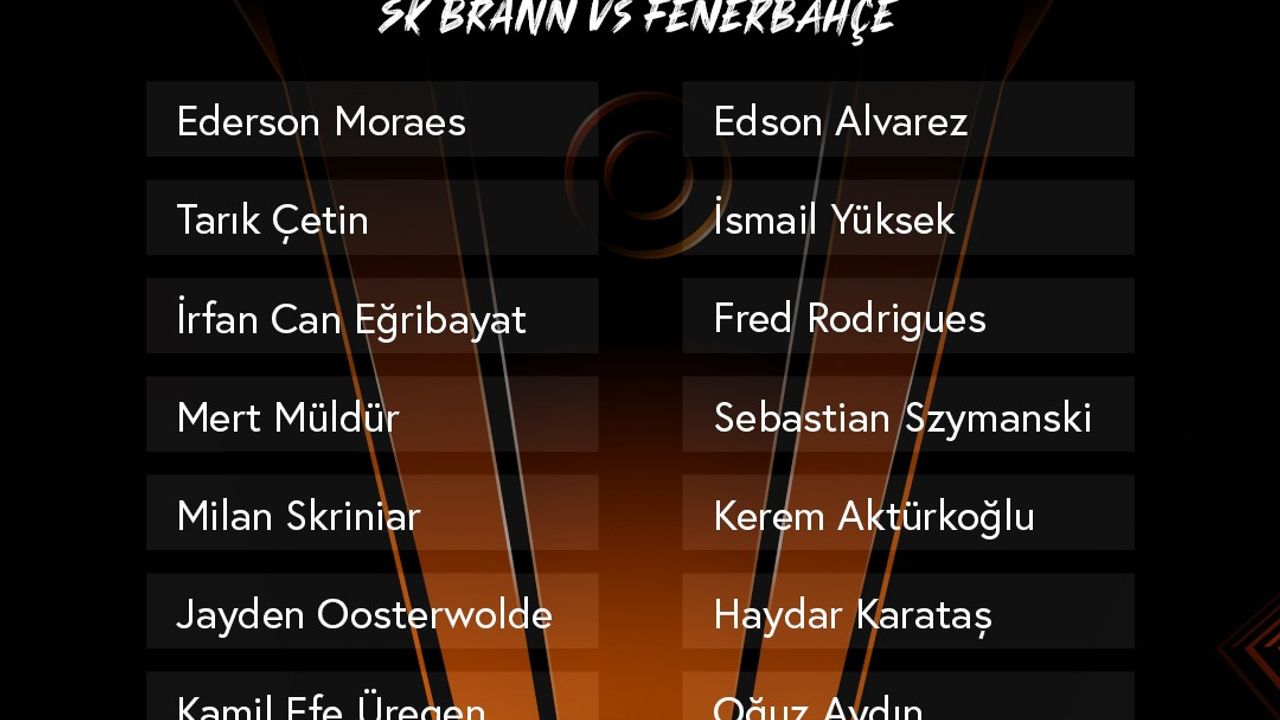 Fenerbahçe'nin UEFA Avrupa Ligi 6. haftasında yarın Norveç ekibi Brann ile deplasmanda oynayacağı maçın kamp kadrosu açıklandı.