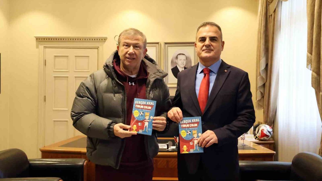 Türk futbolunun efsane golcülerinden Avrupa gol kralı Tanju Çolak, Muğla Valisi Dr. İdris Akbıyık'ı makamında ziyaret ederek, çocuklar için yazılan 'Gerçek Kral Tanju Çalak' kitabını hediye etti.