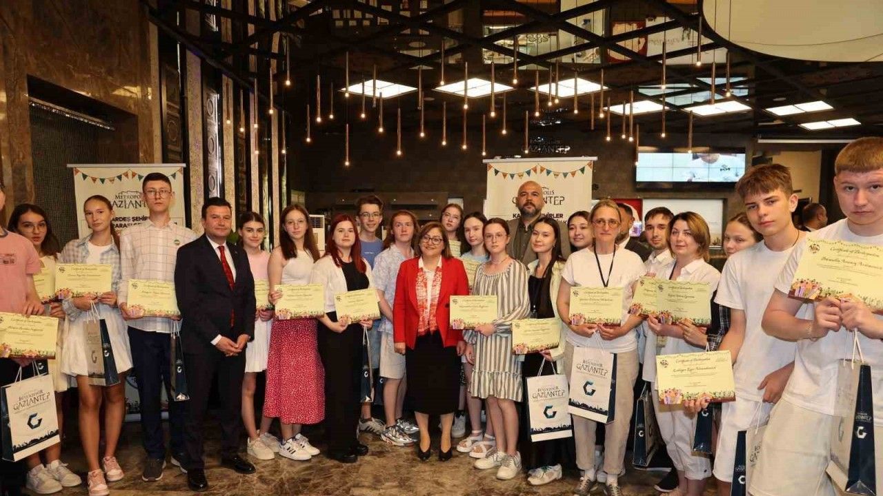 Slovenya Cumhuriyeti’nin Celje, Kuzey Kıbrıs Türk Cumhuriyeti’nin Lefkoşa, Endonezya Cumhuriyeti’nin Surabaya, Tataristan Cumhuriyeti’nin Kazan, Adige Cumhuriyeti’nin Maykop şehirlerinden gelen 75 gençle buluşan Gaziantep Büyükşehir Belediye Başkanı Fatma Şahin, gençlerle sohbet ederek belgelerini takdim etti.