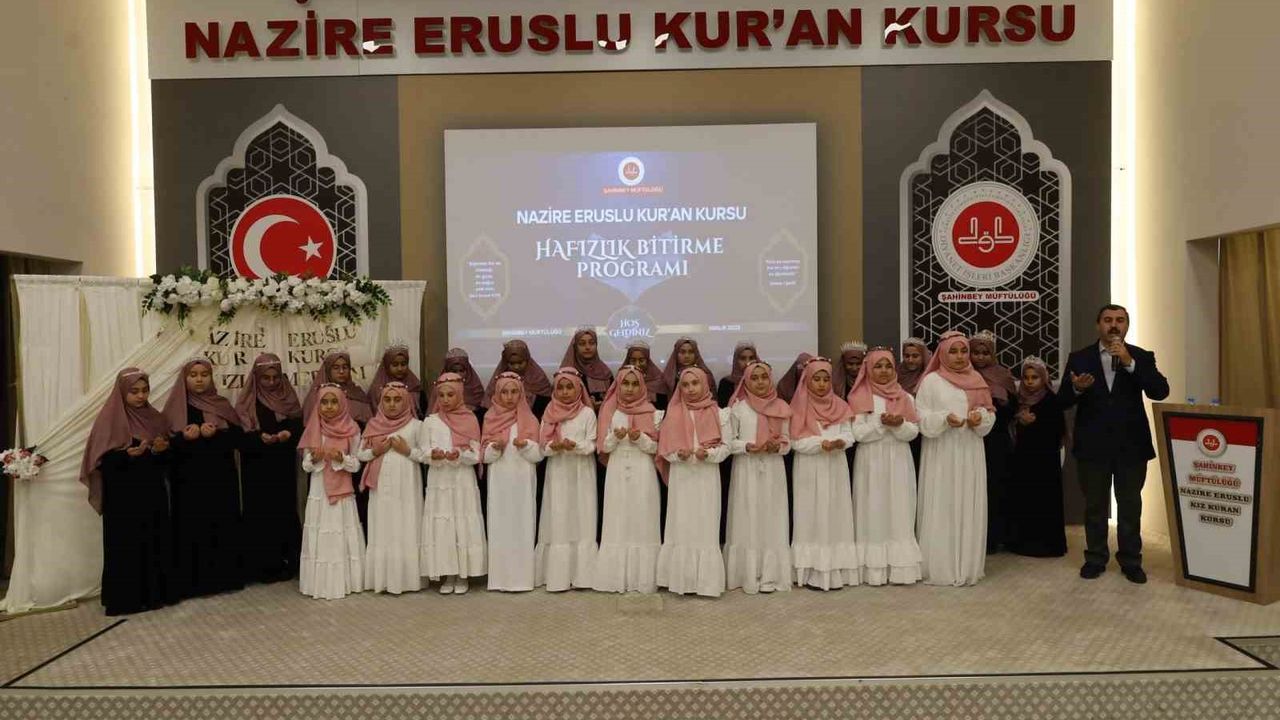 Şahinbey İlçe Müftüsü Mehmet Arslaner de, 'Hafızlığı bitiren öğrencilerimizin mutluluğuna ortak olduk. Nazire Eruslu Kur'an kursumuzda hafızlığını bitiren 16 öğrencimiz ile hazırlık eğitimini tamamlayıp hafızlık eğitimine başlayan 11 öğrencimiz için program düzenledik. Öğrencilerimize başarılar diliyor, onlara emek veren çok kıymetli kurs idaremize ve Kur'an kursu öğreticilerimize teşekkür ediyoruz' diye konuştu.