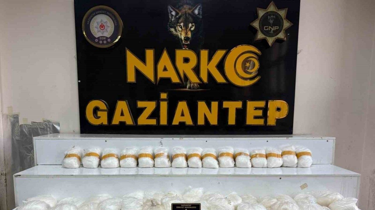 Gaziantep İl Emniyet Müdürlüğü Narkotik Suçlarla Mücadele Şube Müdürlüğü ekipleri ve Cumhuriyet Başsavcılığı koordinesiyle uyuşturucu tacirlerine yönelik operasyon yapıldı. Operasyon çerçevesinde, şüpheli bir araç durduruldu. Araçta yapılan hassas burunlu dedektör köpek destekli adli aramalarda 58 kilo 450 gram metamfetamin ele geçirildi. Olayla ilgili 2 şüpheli yakalandı.