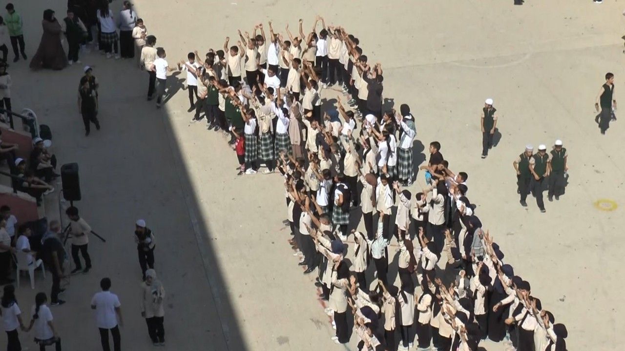 Bu kapsamda Gaziantep’te duyarlı ortaokul öğrencileri, Aksa Tufanı’nın yıl dönümü nedeniyle okul bahçesinde "Gazze" koreografisi oluşturarak, İsrail’in saldırılarına tepki gösterdi. Şehitkamil ilçesindeki Emine Konukoğlu İmam Hatip Ortaokulu öğrencileri ve öğretmenleri "Filistin ve Gazze" temalı farkındalık etkinliği kapsamında bir araya geldi. Gazze yararına hayır çarşısının da düzenlendiği okulda 200 öğrenci "Gazze" koreografisi oluşturarak Gazze’ye destek verdi. Gazze’de yaşanan insanlık dramına dikkat çekmek amacıyla okul bahçesinde bedenleriyle koreografi hazırlayan öğrencilerin bu anlamlı desteği büyük takdir topladı. Yüzlerine boyalarla Filistin bayrağı çizen ve "Özgür Gazze" sloganı da atan öğrenciler, saldırılarda hayatını kaybeden çocuklar için dua okudu.