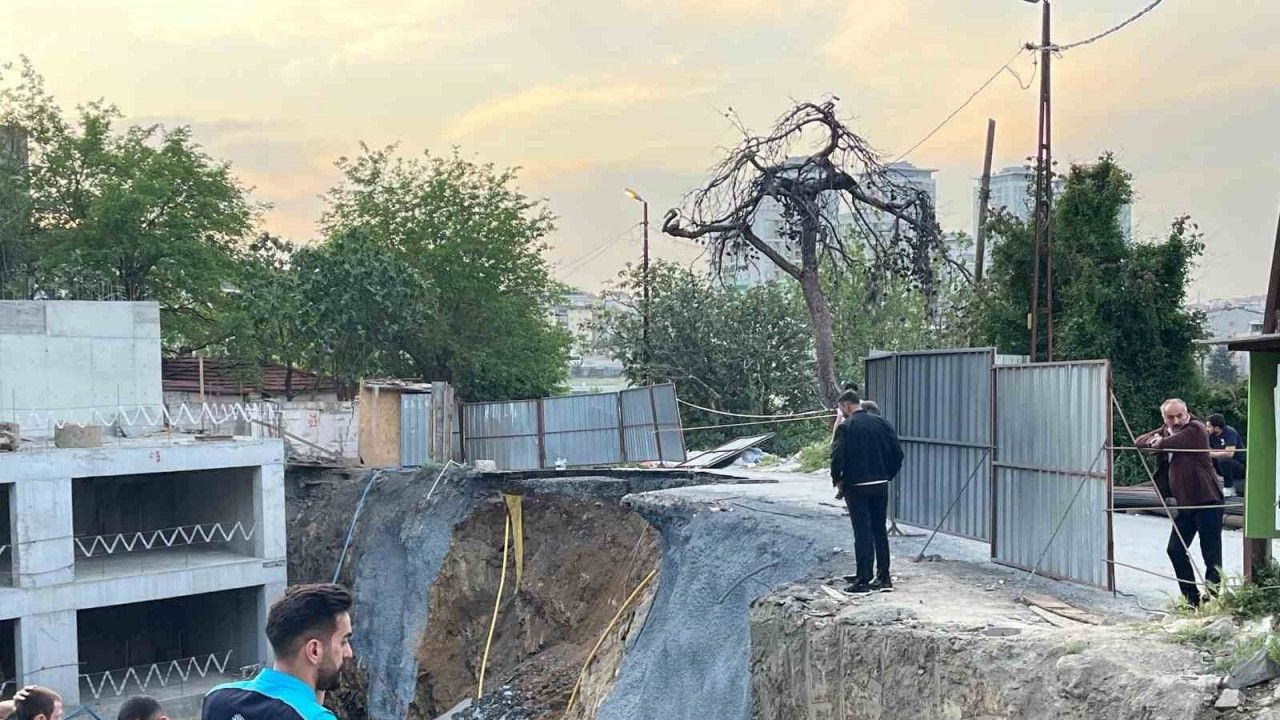İstanbul Gaziosmanpaşa’da inşaat çalışması sırasında yolda çökme meydana geldi, doğalgaz hattı zarar gördü.