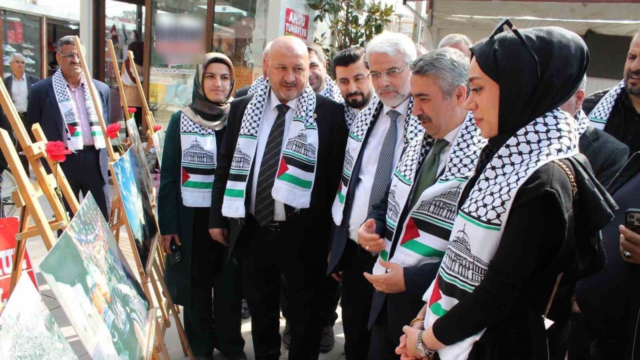Sergide, Gazze’de Ramazan ayında yaşanan insanlık dramını anlatan resimler yer aldı. Duygusal anların da zaman zaman yaşandığı serginin gün boyunca açık kalacağı belirtildi.