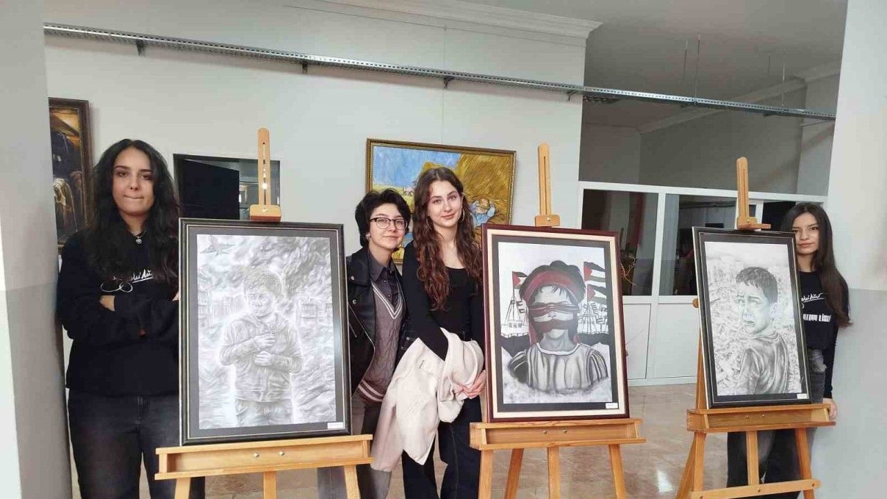 Bursa Zeki Müren Güzel Sanatlar Lisesi öğrencilerinin hazırladığı sergi, Gazze’deki savaş mağduru çocukların sessiz çığlıklarını resimlerle görünür kıldı.
