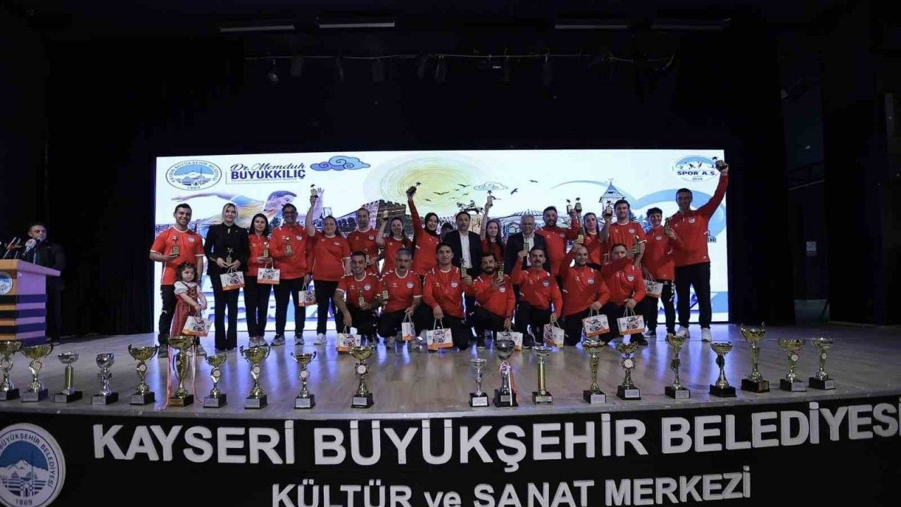 Konuşmaların ardından Kayseri Spor A.Ş. Spor Kulübü ve Kayseri Büyükşehir Belediyesi Spor Kulübü bünyesinde yetişen ve Okçuluk, Bedensel Engelli Okçuluk, Dağ Bisikleti, Yüzme, Görme Engelli Yüzme, Geleneksel Türk Okçuluğu, Masa Tenisi, İşitme Engelliler Masa Tenisi, Özel Sporcular Masa Tenisi, Kickboks, Wushu Kung Fu, Alp Disiplini Kayak, Su Kayağı, Tenis, Hentbol, Basketbol, Futbol, Jimnastik, Badminton, Atletizm, Atıcılık(Havalı-Ateşli Silahlar) olmak üzere 21 branşta Türkiye Avrupa ve Dünya şampiyonalarında derece alan sporcuları onurlandırmak üzere ödül takdimine geçildi. Başkan Büyükkılıç, Spor A.Ş. sporcularına ödüllerini takdim ederek, tüm sporcuları kutladı ve başarılarının devamını diledi. Sporcular ve aileler de düzenlenen ödül töreninin yanı sıra Büyükşehir Belediyesi tarafından sunulan tüm imkânlardan dolayı Büyükkılıç’a teşekkürlerini iletti.