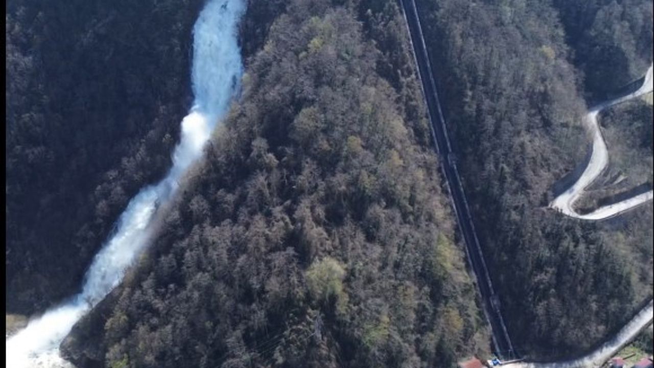 Giresun’un Doğankent ilçesinde Harşıt Vadisi ve Uluslararası İran Karayolu üzerinde bulunan Hidro Elektrik Santralinin (HES) fazla suyunun tahliyesiyle oluşan yapay şelale, görenleri kendine hayran bırakıyor.