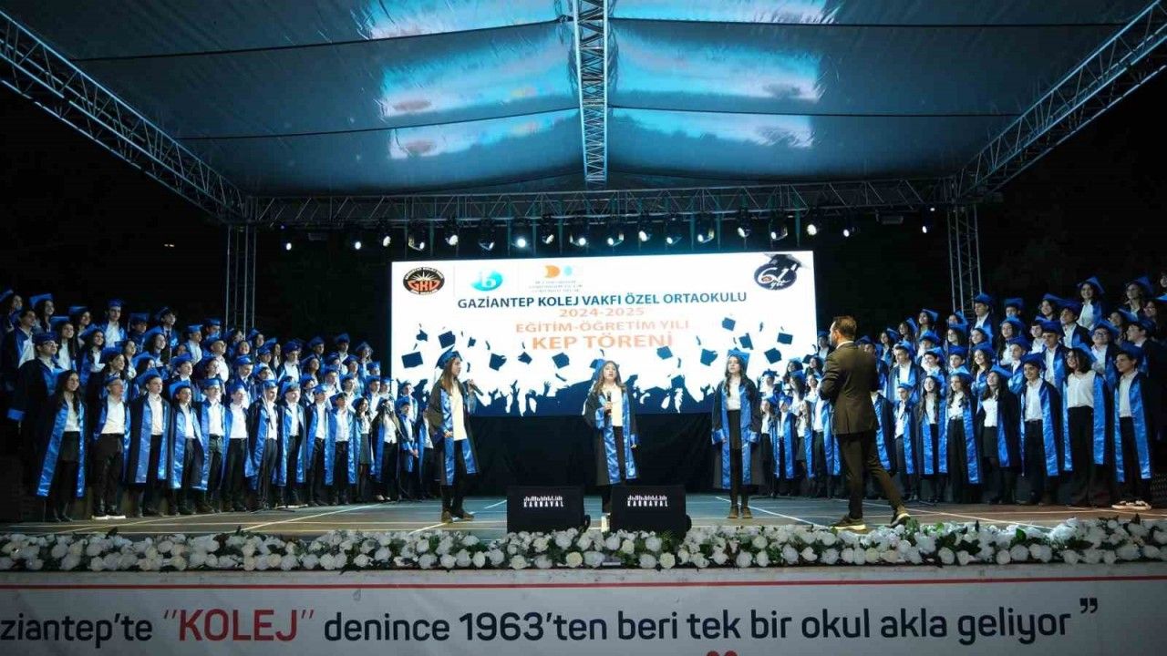 Gaziantep Kolej Vakfı Özel Ortaokulu’ndan 2024-2025 eğitim öğretim yılında mezun olan öğrenciler için düzenlenen kep töreninde duygusal anlar yaşadı. GKV Mütevelli ve Yönetim Kurulu Başkanı Nüket Ersoy’un da katıldığı törende heyecan doruktaydı.