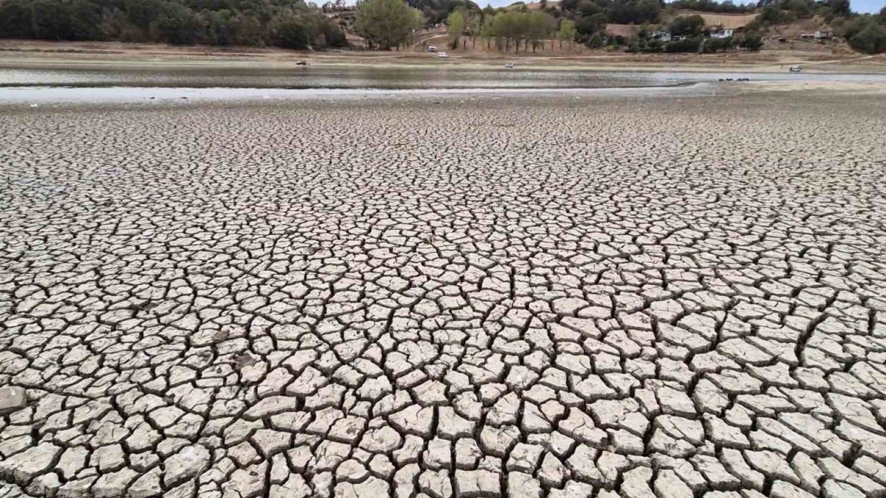 Tekirdağ’da Bıyıkali Göleti’nde kuraklık ve aşırı sıcaklıkların etkisiyle su seviyesi yüzde 2’nin altına indi.