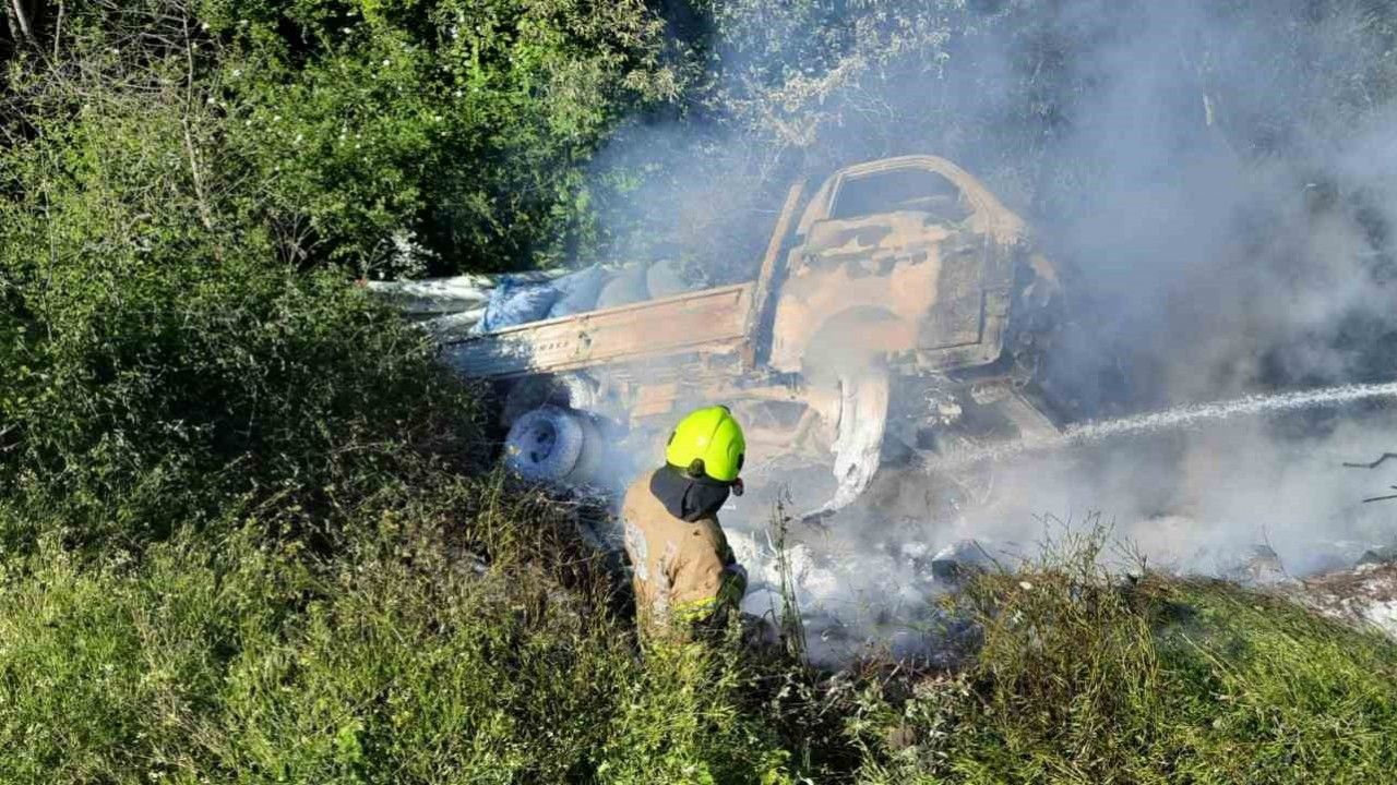 Edinilen bilgiye göre, Denizkent-Biga yolu üzerindeki Tahirova mevkisinde M.E. idaresindeki 10 TD 659 plakalı ticari araç, seyir halindeyken henüz bilinmeyen bir nedenle alev aldı. İhbar üzerine olay yerine Gönen İtfaiye Grup Amirliği ekipleri sevk edildi.