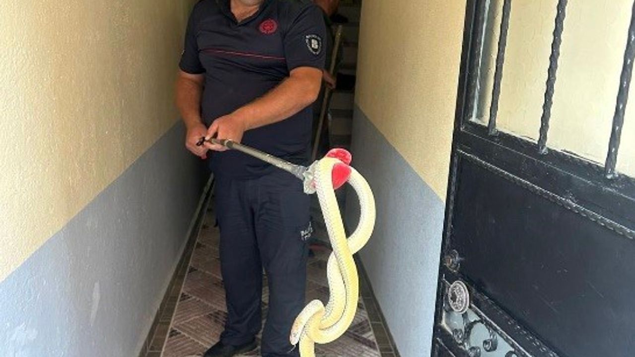 Balıkesir’in Gönen ilçesi Karşıyaka Mahallesi 4008 Sokak’ta bulunan bir apartman dairesine yılan girmesi üzerine itfaiye ekipleri harekete geçti.