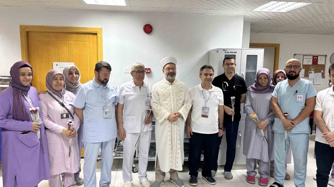 Diyanet İşleri Başkanı Ali Erbaş, Arafat yolu üzerindeki Türk Hastanesini ziyaret edip, tedavi görenlere tek tek çiçek vererek hatırını sordu. Hastane Başhekimi Prof. Dr. Mehmet Rıdvan Yalçın’dan hastaların durumları ve hizmetler hakkında bilgi alan Ali Erbaş, "Otellerde kurulan polikliniklerle hacılarımızın ayağına sağlık hizmeti götürüyoruz. Uzman doktorlarımızda Mekke’de kurduğumuz geniş kapsamlı 110 yataklı hastanemizde hacılarımıza 20 branşta sağlık hizmeti veriyoruz. Türkiye’deki e nabız uygulamasına buradaki sağlık hizmetini de entegre ettik. Ülkemizde yapılan bütün tetkikleri buradaki uzmanlarımız görebiliyorlar. Kısa sürede muayeneleri yapıp, yataklı tedavi olacaklara da, ibadetlerinden geri kalmamaları için özel bir ihtimam gösterip kısa sürede taburcu olmalarını sağlıyoruz. Daha ileri derecedeki ağır hastalarımızda Suudi Arabistan ile anlaşmalı olarak Nur Hastanesine sevk ediliyorlar" dedi.