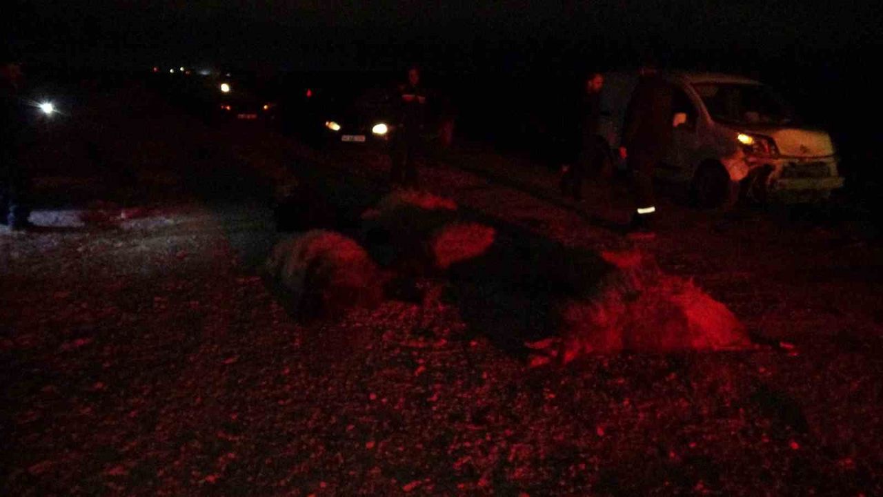 Malatya'da hafif ticari aracın küçükbaş hayvan sürüsüne çarptığı kazada sürücü yaralanırken, 10'dan fazla koyun telef oldu.