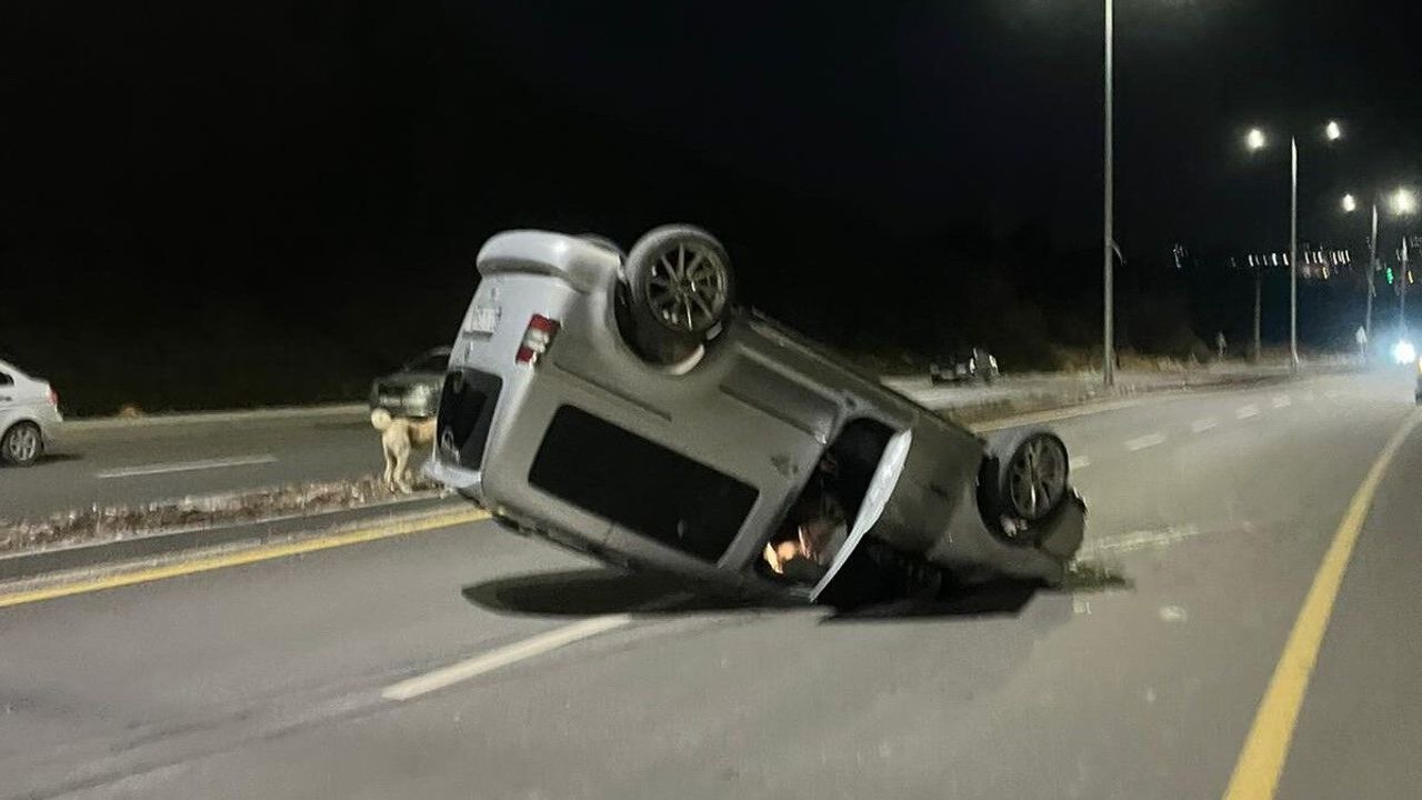 Adıyaman'da, kontrolden çıkan bir hafif ticari araç takla atarak ters döndü.