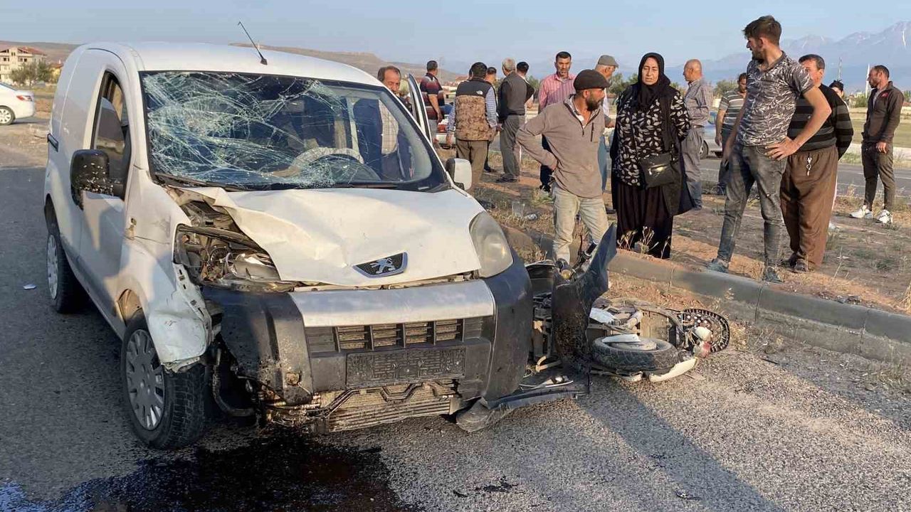 Aksaray’da hafif ticari araçla çarpışan motosikletli ağır yaralandı.