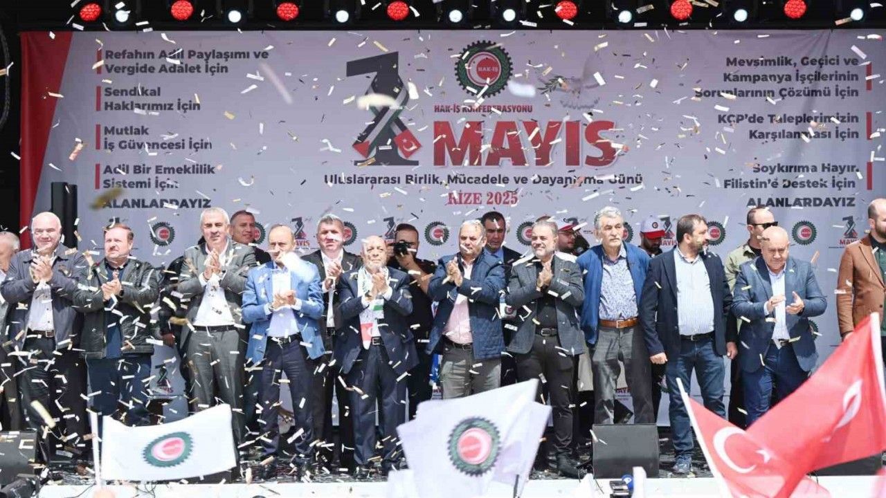 HAK-İŞ Konfederasyonu ‘1 Mayıs Emek ve Dayanışma Günü’ çerçevesinde Rize 15 Temmuz Demokrasi ve Cumhuriyet Meydan’ında toplandı. HAK-İŞ Genel Başkanı Mahmut Arslan, HAK-İŞ üye sendikaların başkanları ve yönetim kurulu üyeleri, HAK-İŞ üyesi işçiler ve birçok vatandaşın katılımıyla gerçekleşen programda, tüm işçilerin 1 Mayıs Emek ve Dayanışma Günü kutlandı.