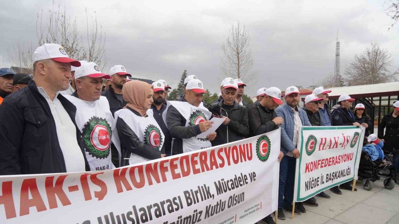1 Mayıs Emek ve Dayanışma Günü dolayısıyla HAK-İŞ Konfederasyonu Niğde İl Başkanı ve Hizmet-İş Sendikası Niğde Şube Başkanı Kadir Yenel, sendika üyeleriyle birlikte basın açıklaması yaptı.