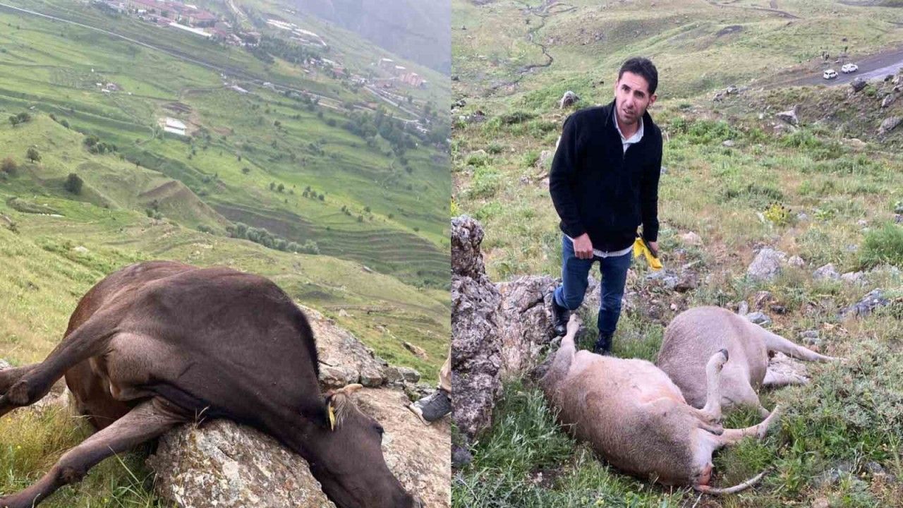Hakkari’nin Otluca köyünde etkili olan sağanak yağışın ardından yıldırım düşmesi sonucu 3 inek telef oldu.