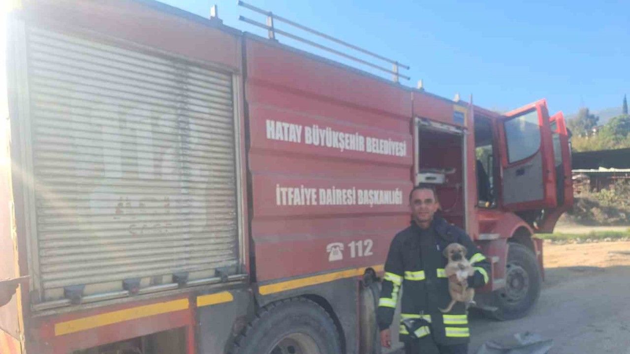 Hatay’ın Kırıkhan ilçesinde 6 metre derinliğindeki çukura düşen yavru köpek, itfaiye ekiplerince kurtarıldı.