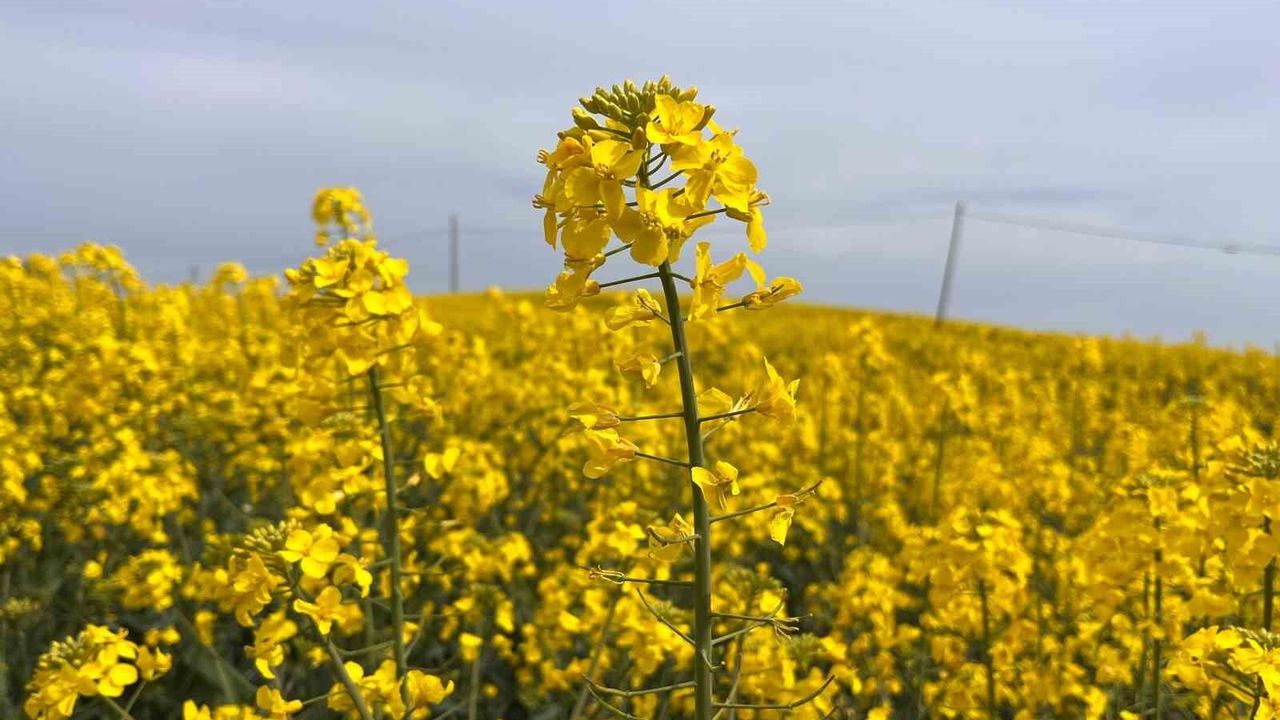 İlçenin bereketli topraklarına ekilen ayçiçeğine alternatif olarak ekilen ve bitkisel yağ üretiminde kullanılan kanola bitkisi çiçek açmaya başladı.
