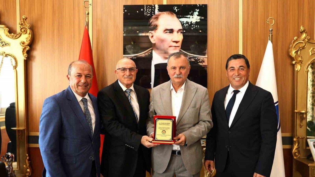 Manisa’da faaliyetlerini sürdüren hemşehri dernekleri, Yunusemre Belediye Başkanı Semih Balaban’a ortak çalışmalara verdiği katkılar nedeniyle teşekkür plaketi takdim etti.