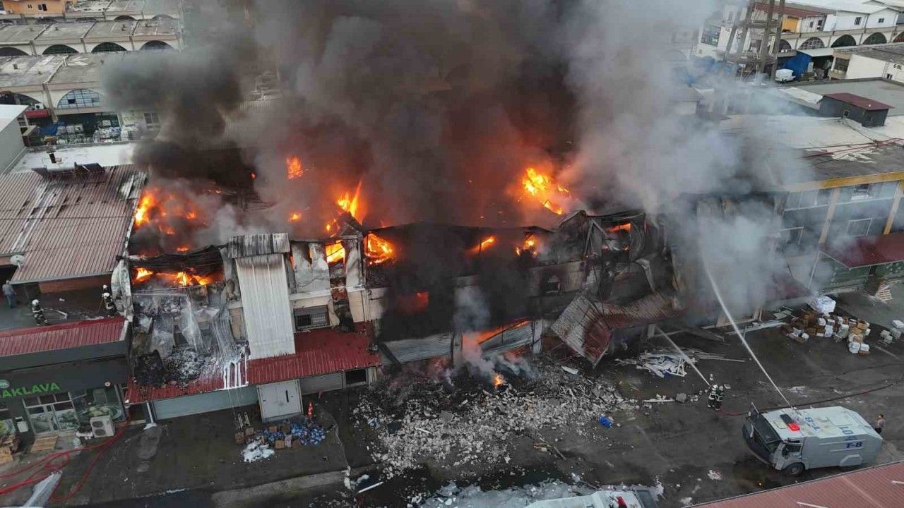Söndürme çalışmalarına Toplumsal Olaylara Müdahale Aracı (TOMA) da katıldı. Bitişik iş yerlerine de sıçrayan yangını söndürme çalışmaları sürerken yangın, dron ile havadan görüntülendi.