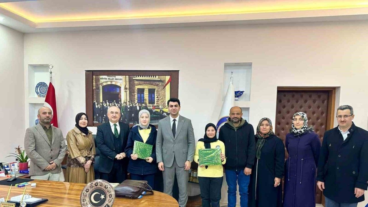 İlçe Milli Eğitim Müdürü Salim Karaboğa, Milli Eğitim Şube Müdürü Şeyda Bulut, Şehitler Ortaokulu Müdürü Ali Osman Kılıç ve başarılı öğrenciler ile aileleri Kaymakam Muhammet Samet Bahar’ı makamında ziyaret etti. Başarılarından dolayı her iki öğrenciyi tebrik eden Kaymakam Bahar, öğrencilere çeşitli hediyeler verdi.