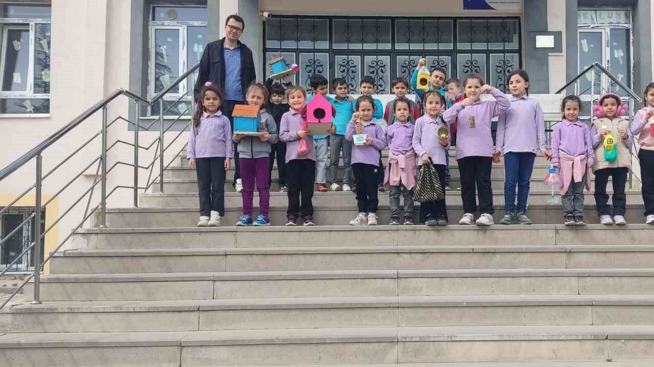 Atatürk İlkokulu 1’inci sınıf öğrencileri "İyilik Haftası" etkinlikleri çerçevesinde Sınıf Öğretmenleri Nuriye Girgin ve İbrahim Güleç nezaretinde plastik ve tahtadan yaptıkları yemlikleri okulun bahçesindeki ağaçlara astılar.