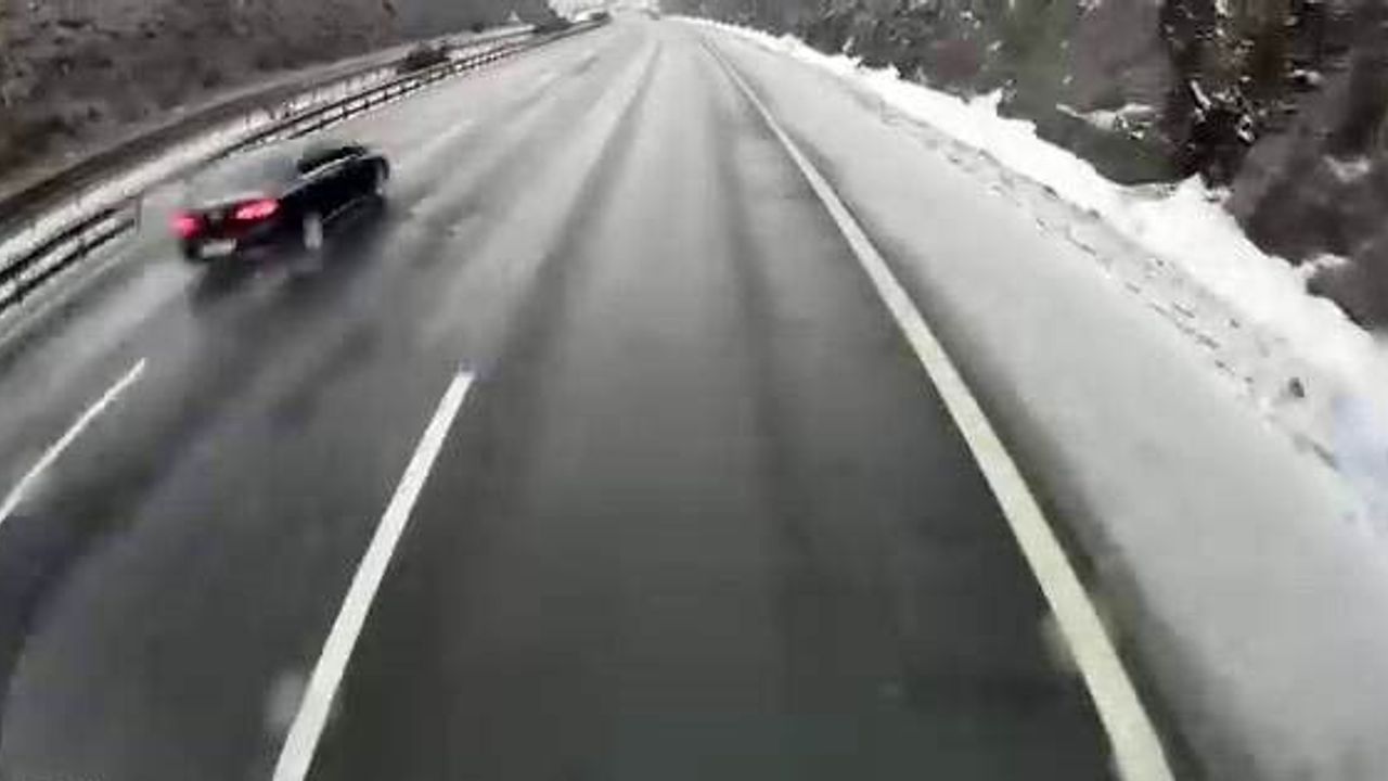 Diyarbakır'da gizli buzlanma oluşan yolda hız yapan sürücü, direksiyon hakimiyetini kaybedince duvara çarptı. Çarpma sonrası araç alev alırken, kaza güvenlik kameralarına yansıdı.