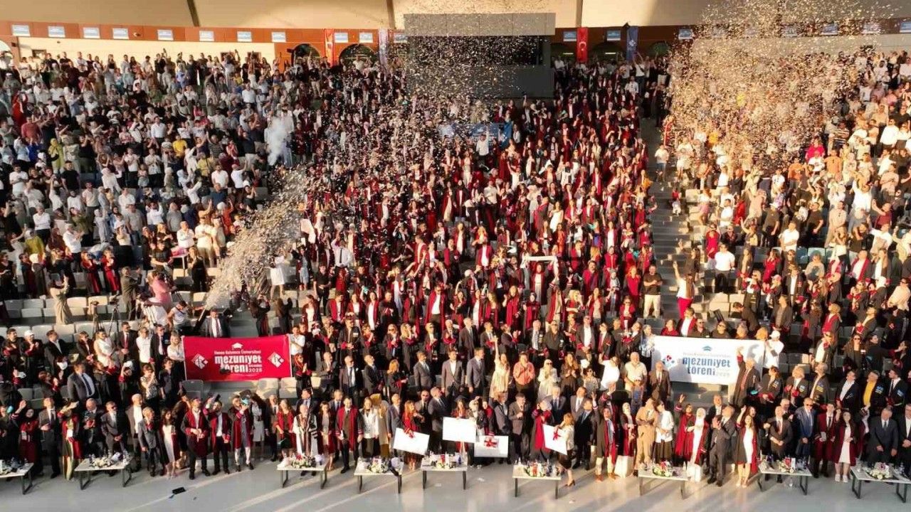 Her fakülte ve bölümde ilk üçe giren öğrenciler sahneye davet edilerek diplomalarını aldı. Tören sonunda toplam bin 657 öğrenci, mezuniyet coşkusunu aileleriyle birlikte yaşayarak keplerini gururla gökyüzüne fırlattı.