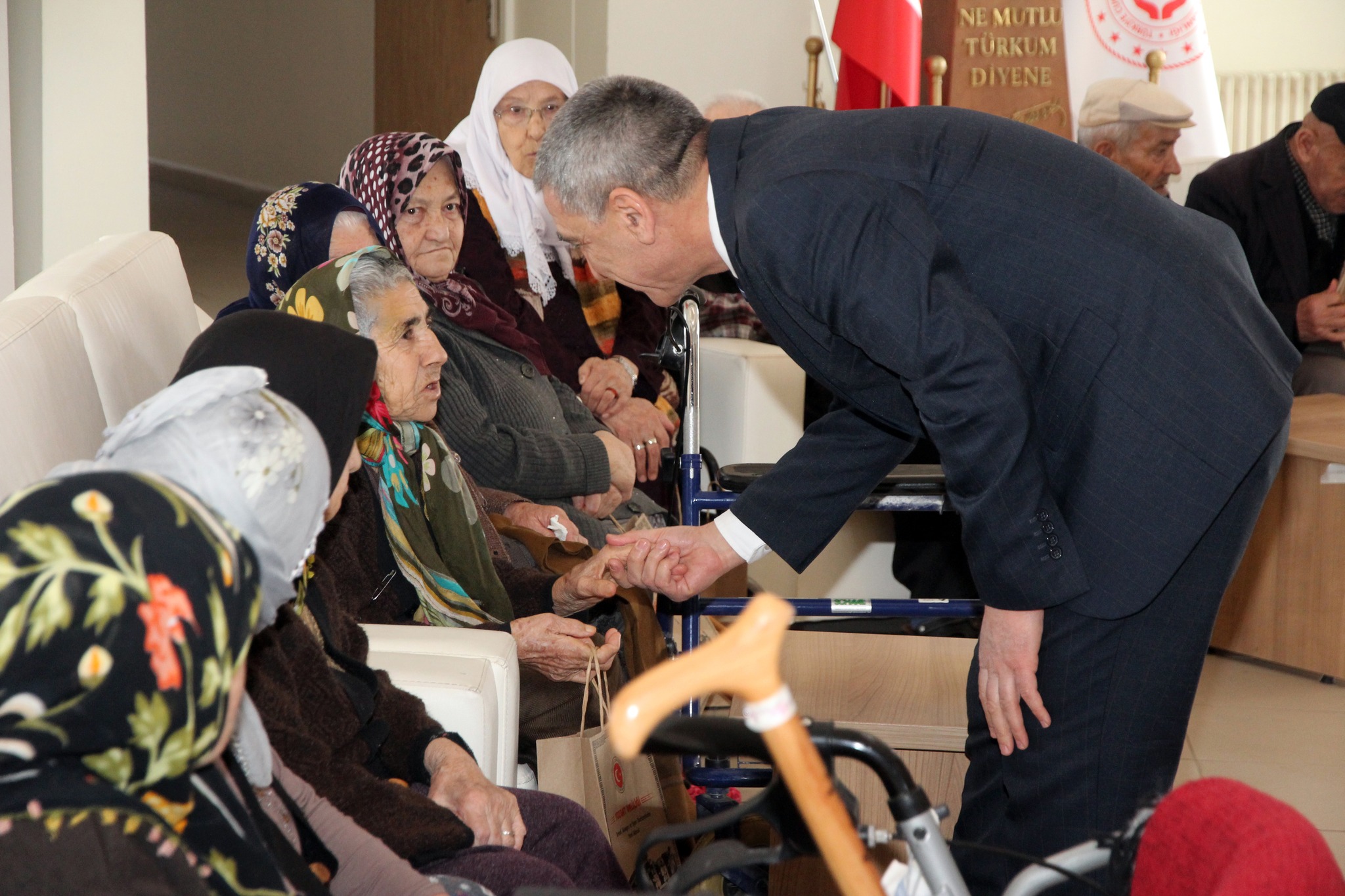 Huzurevi sakinleri tarafından sevgiyle karşılanan Vali Vekili Kayık, yaşlılarla tek tek görüşerek odalarında ziyaret edip hediyelerini takdim etti. Kayık, ziyareti sırasında yaptığı konuşmada, büyüklerimizi ziyaret etmekten mutluluk duyduğunu belirterek; "Yaşlılarımız; dün ile bugün arasında köprü olan, tecrübeleri ve bilgi birikimleriyle geleceğimize ışık tutan, kültürümüzü ve değerlerimizi yarınlara taşımamızı sağlayan toplumsal hafızamızdır. Her yaşın kendine özgü güzellikleri vardır. Yaşlılık hayatın çok özel bir dönemidir. Yaşlılık insanın yaşanmışlıklarla olgun başaklar gibi vakarlı hale geldiği, edindiği tecrübelerle dünyaya bambaşka bir gözle baktığı, fikir olarak olgunlaşırken, güç ve kuvvet bakımından zayıfladığı bir dönemdir. Yaşlılarımızın sağlıklı ve huzur içinde bir yaşam sürmeleri için, onların gönüllerini hoş tutarak, hayır dualarını almalıyız. Unutmamalıyız ki, bugünün gençleri, yarının yaşlılarıdır. Her ne kadar devletimiz huzur evlerinde, kimsesiz ve yaşlılarımıza yeterli derecede maddi ve manevi imkânları sunsa da, onların manevi olarak rahat edecekleri yegâne yerleri, aile ocaklarıdır. Çok iyi bilmeliyiz ki; onlar bizim için bir yük değil, saadet kaynağıdır. Yaşlılarımız, genç insanlarla geçmişimiz arasında doğru bağları kurabilmek açısından çok büyük bir zenginliktir. Toplumumuzun rehberleri olan büyüklerimizi sadece özel gün ve haftalarda değil, yılın her gününde hatırlayarak, yanlarında olduğumuzu onlara hissettirmeliyiz. Bizlere iyi ve güzel olanı taşıdıkları ve gönüllerimizi dostluk ve kardeşlik gibi evrensel değerlerle tanıştırdıkları için, onları daima sevgiyle, saygıyla, hürmet ve muhabbetle karşılamalıyız. Onları, tecrübelerinden faydalanacak birer rehber ve evimizin huzur kaynağı olarak görmeliyiz. Bu duygularla, Yaşlılar Haftası'nı kutluyor, bütün büyüklerimize sağlıklı ve huzur dolu bir yaşam temennisiyle, saygılar sunuyorum.” dedi.