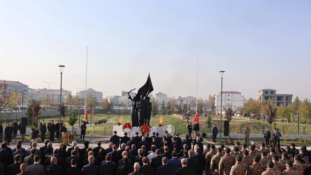 Saat 09.05’te sirenler eşliğinde gerçekleştirilen saygı duruşu ve İstiklal Marşı’nın okunması ile devam eden törende, Atatürk ve silah arkadaşları anıldı.