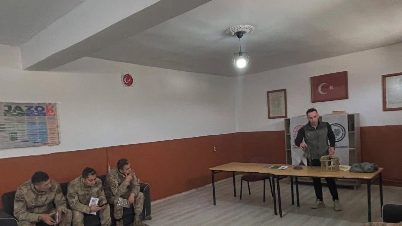 Doğa Koruma ve Milli Parklar Şube Müdürlüğü ekipleri ile HAYDİ Timi, Karakoyunlu Taşburun Jandarma Karakolu’nda avcılıkla ilgili mevzuat ve doğa koruma konularında bilgilendirme yaptı.