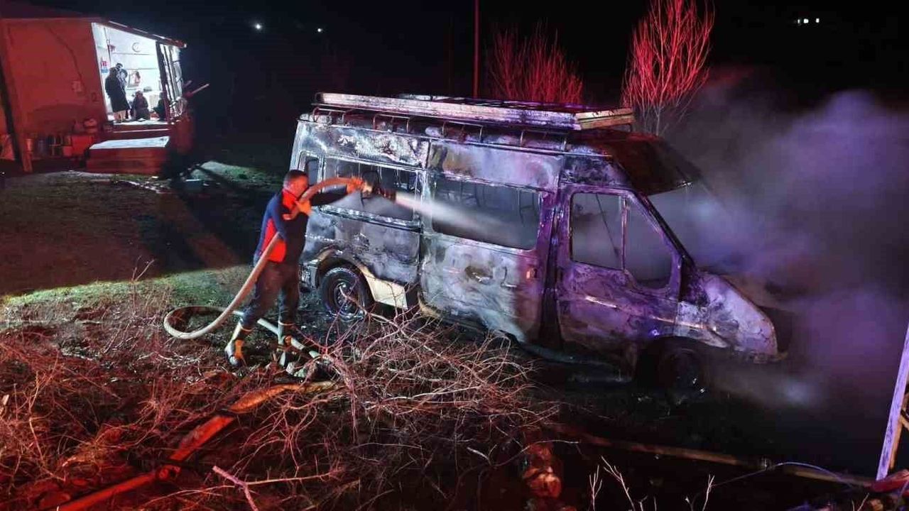 Iğdır'ın Tuzluca ilçesine bağlı Katırlı köyünde, muhtar Hanifi Kızıltaş'a ait köy servisi ve öğrenci servisi olarak da kullanılan minibüs gece saatlerinde henüz bilinmeyen bir nedenle alev aldı. Kısa sürede büyüyen yangın çevrede paniğe neden oldu. İhbar üzerine olay yerine sevk edilen itfaiye ekipleri yangına hızlı şekilde müdahale ederek kontrol altına aldı. Olayda can kaybı ya da yaralanma yaşanmazken, araç kullanılamaz hale geldi. Yangının çıkış nedenine ilişkin inceleme başlatılırken, olayda kundaklama ihtimali üzerinde durulduğu öğrenildi. Yetkililer, yangınla ilgili geniş çaplı soruşturma başlattı.
